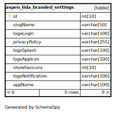 | Column | Type | Size | Nulls | Auto | Default | Children | Parents | Comments |