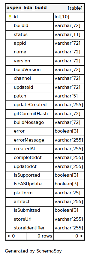 | Column | Type | Size | Nulls | Auto | Default | Children | Parents | Comments |