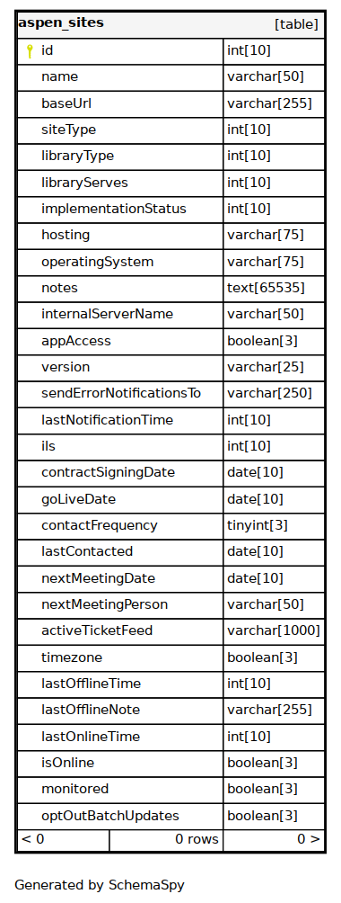 | Column | Type | Size | Nulls | Auto | Default | Children | Parents | Comments |
