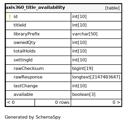 | Column | Type | Size | Nulls | Auto | Default | Children | Parents | Comments |
