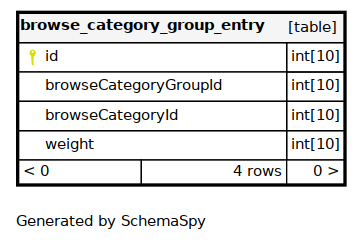 | browseCategoryGroupId | Must be unique | Asc/Asc | browseCategoryGroupId + browseCategoryId |