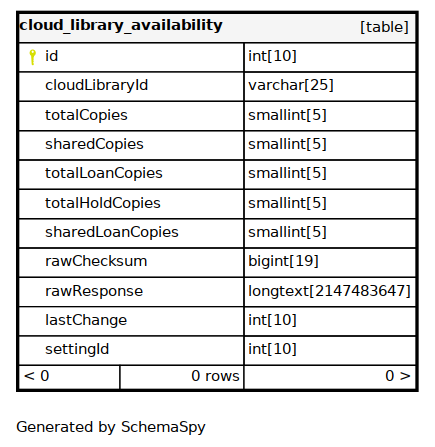 | cloudLibraryId | VARCHAR | 25 | null |