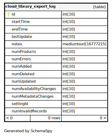 | Column | Type | Size | Nulls | Auto | Default | Children | Parents | Comments |