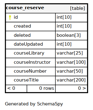 | course | Must be unique | Asc/Asc/Asc/Asc | courseLibrary + courseNumber + courseInstructor + courseTitle |
