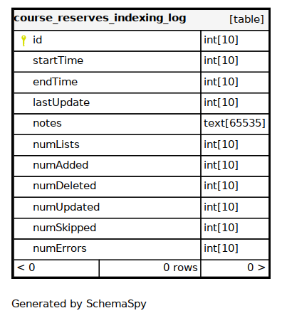 | Column | Type | Size | Nulls | Auto | Default | Children | Parents | Comments |