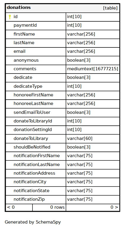 | donateToLibrary | VARCHAR | 60 | √ | NULL |