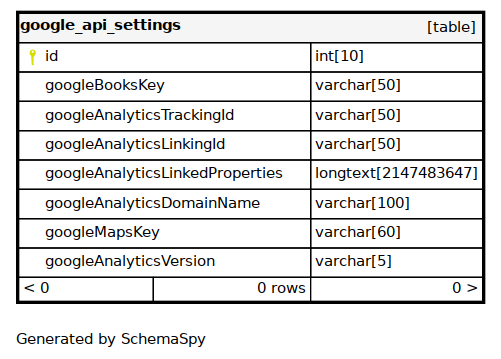 | googleMapsKey | VARCHAR | 60 | √ | NULL |