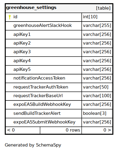 | greenhouseAlertSlackHook | VARCHAR | 255 | √ | NULL |