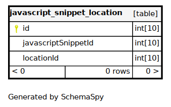 | javascriptSnippetLocation | Must be unique | Asc/Asc | javascriptSnippetId + locationId |