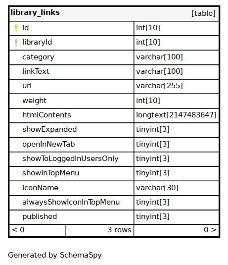 | Column | Type | Size | Nulls | Auto | Default | Children | Parents | Comments | |||