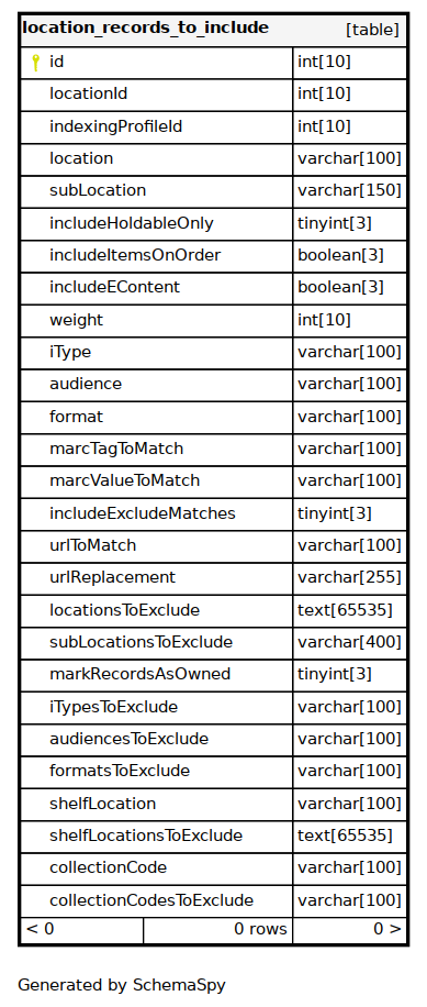 | shelfLocationsToExclude | TEXT | 65535 | √ | NULL |