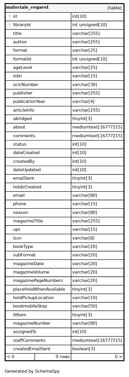 | oclcNumber | VARCHAR | 30 | √ | NULL |