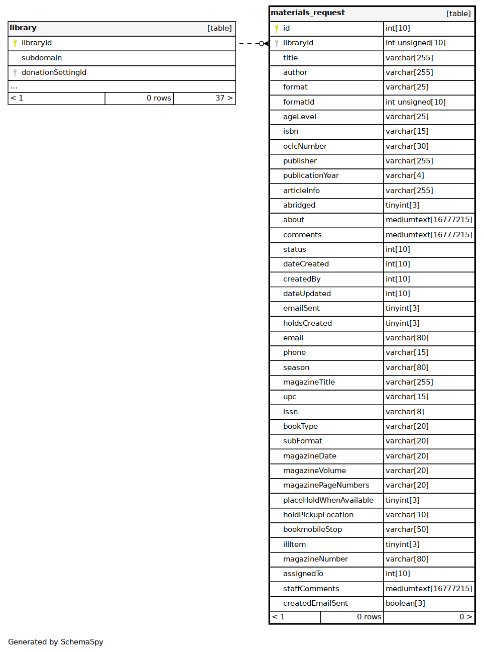 | libraryId | INT UNSIGNED | 10 | √ | NULL |