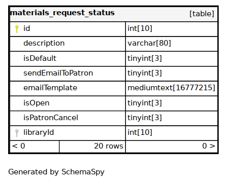 | sendEmailToPatron | TINYINT | 3 | √ | NULL |