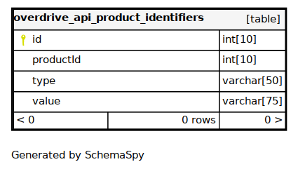 | Column | Type | Size | Nulls | Auto | Default | Children | Parents | Comments |