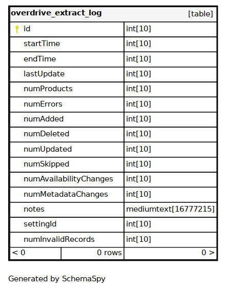 | Column | Type | Size | Nulls | Auto | Default | Children | Parents | Comments |