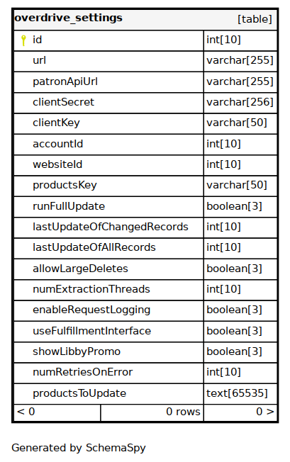 | Column | Type | Size | Nulls | Auto | Default | Children | Parents | Comments |