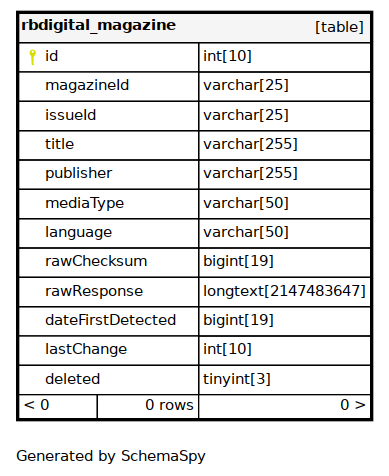 | magazineId | Must be unique | Asc/Asc | magazineId + issueId |