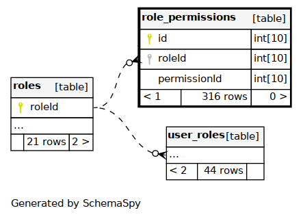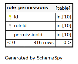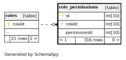 | roleId_2 | Must be unique | Asc/Asc | roleId + permissionId |