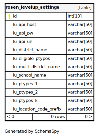 | Column | Type | Size | Nulls | Auto | Default | Children | Parents | Comments |