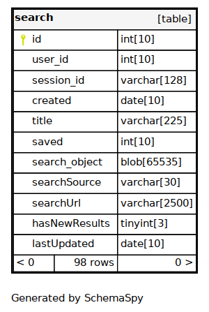 | Column | Type | Size | Nulls | Auto | Default | Children | Parents | Comments | |||
