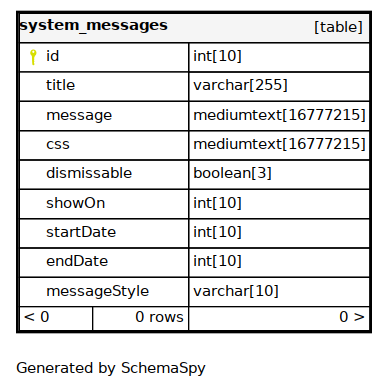| Column | Type | Size | Nulls | Auto | Default | Children | Parents | Comments |