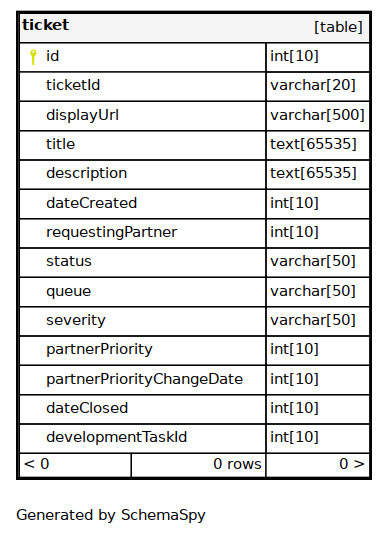 | Column | Type | Size | Nulls | Auto | Default | Children | Parents | Comments | ||||||