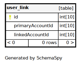 | user_link | Must be unique | Asc/Asc | primaryAccountId + linkedAccountId |