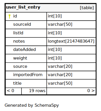 | Column | Type | Size | Nulls | Auto | Default | Children | Parents | Comments |