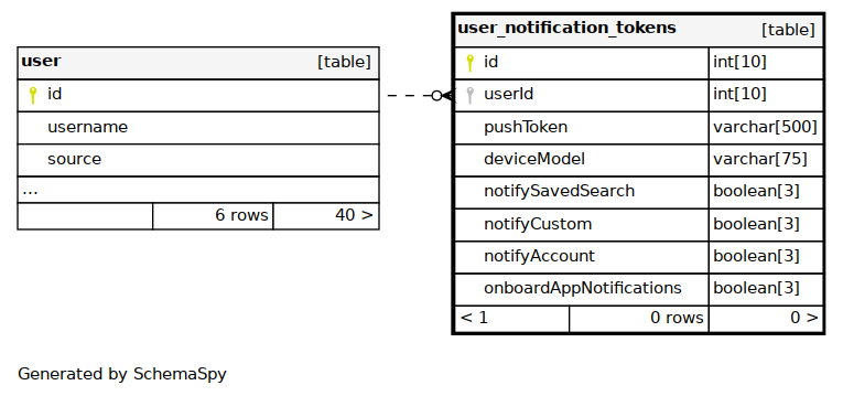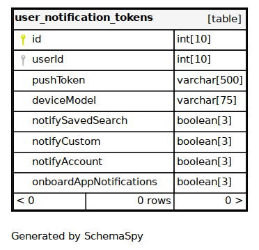 | pushToken | VARCHAR | 500 | √ | NULL |