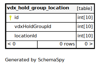 | vdxHoldGroupLocation | Must be unique | Asc/Asc | vdxHoldGroupId + locationId |
