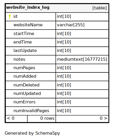 | Column | Type | Size | Nulls | Auto | Default | Children | Parents | Comments |
